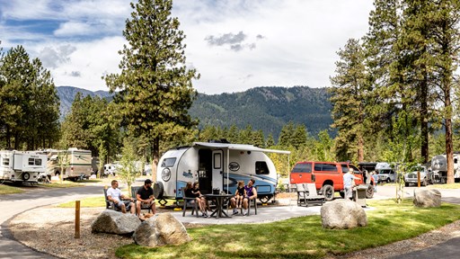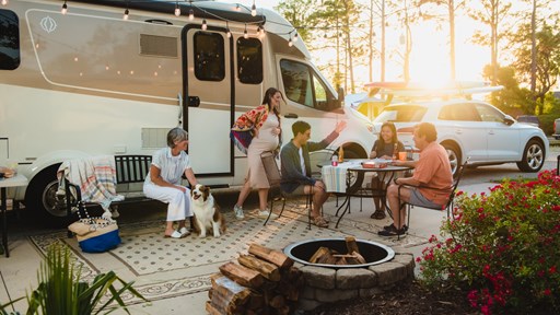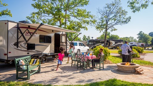 Discover even more room to enjoy outdoor living with a KOA Patio Site®. These spacious sites offer your very own patio equipped with outdoor furniture and the perfect place for a fire. Wake up and enjoy a cup of coffee with the sunrise and spend an evening relaxing with family and friends.